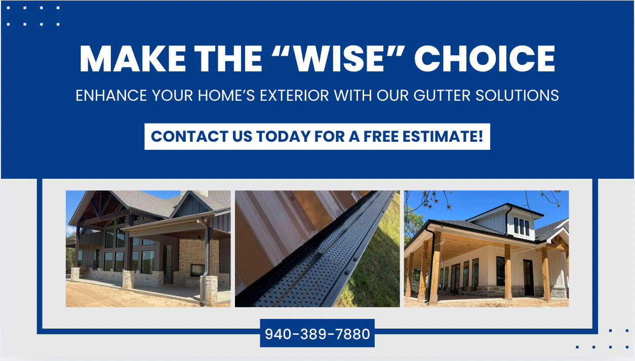 We’re a locally owned and fully insured gutter business based in Decatur, TX. At Wise Gutter Solutions, we take pride in delivering reliable service from people who genuinely care about our community. We use quality materials, offer honest advice, and stand behind every job, so you can feel confident your home is in good hands.